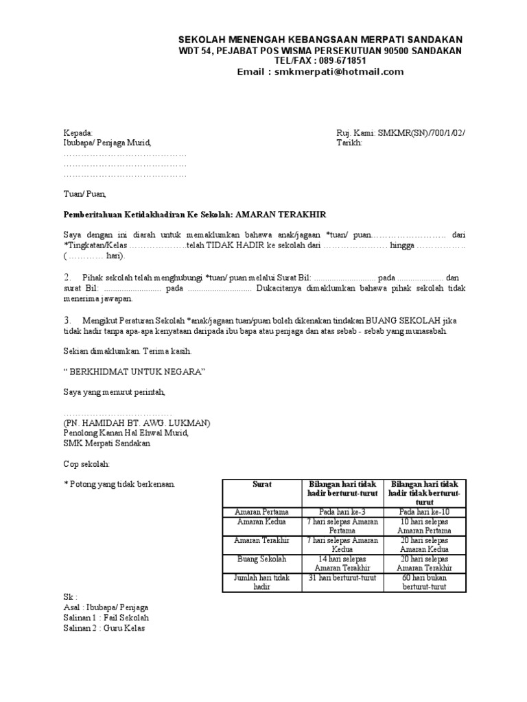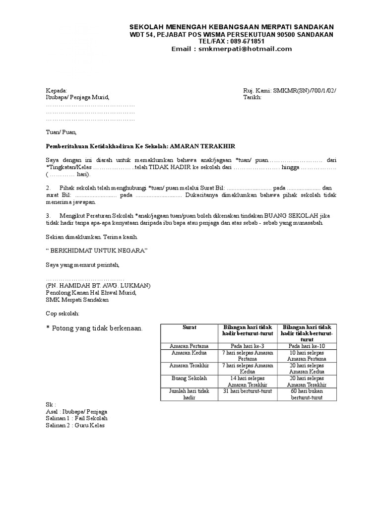 Format Surat Amaran Terakhir Untuk Ketidakhadiran Ke Sekolah Pdf